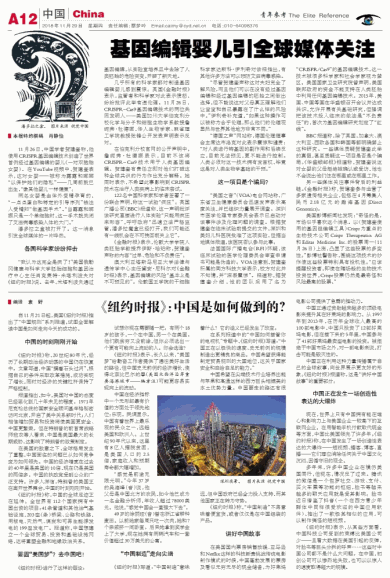 基因编辑婴儿引全球媒体关注