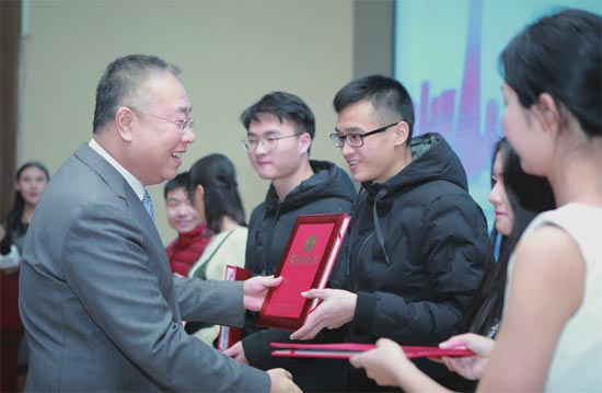 一汽丰田汽车销售有限公司副总经理刘振国为学子颁发筑梦证书。图片来源 资料图片