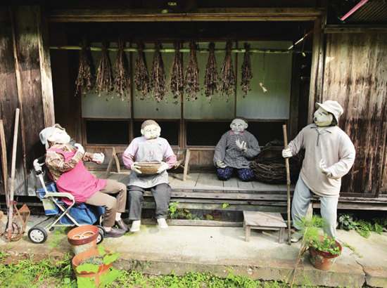 日本姫路市安富町在废弃的民宅中安置稻草人,展示传统乡村生活的景象。到2040年,人口流失将使日本近900个村镇不复存在。图片来源 视觉中国