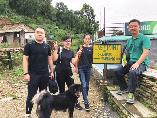 博卡拉位于喜马拉雅山谷地,是世界旅游者公认的徒步天堂。尼泊尔大部分山区没有公路,山民们主要靠步行出入。听博卡拉当地人说,许多山路已经存在了好几个世纪,是名副其实的“古道”。在徒步过程中,沿路总能看到简易的房屋坐落在葱翠山林中,有的农妇蹲在自家门前准备一家人的食物,有的山民经营着仅供徒步者休息的客栈或是补充食物的店铺……路途中,一位农妇得知了我们的路线后,好心提醒我们哪些路段的水蛭特别多,必须多加小心。