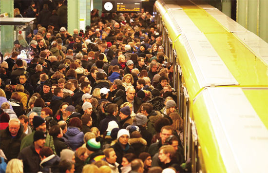 12月10日,由于铁路工人罢工,德国柏林的上班族涌向地铁。图片来源 视觉中国
