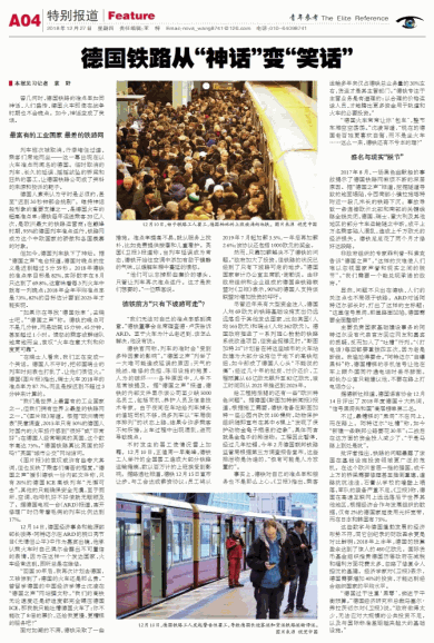 曾几何时,德国铁路的准点率如同神话,人们盛传,德国火车即使在战争时期也不会晚点。如今,神话变成了笑话。