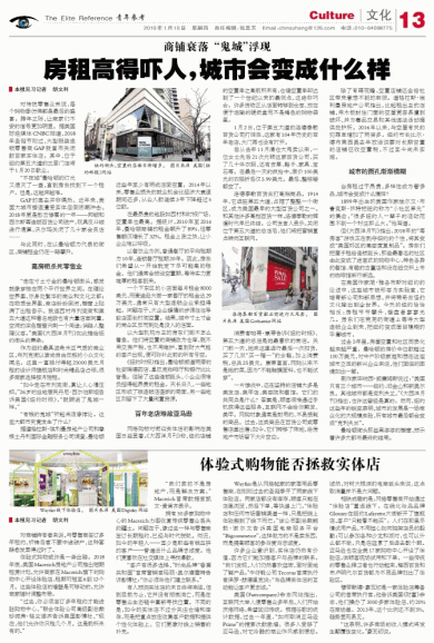 一片惨淡中,还在坚持的店铺大多是美发店、美甲店、美容院和餐馆。它们的共同点是什么?答案是,顾客很难通过手机获得这些服务,互联网不会给你剪发、美甲。网购对象通常是耐用的、不易损耗的商品。过去,这类商品在百货公司或零售店里出售;如今,它们转移了阵地,给房地产市场留下大片空白。