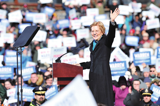 2018年的最后一天,她宣布组建总统竞选考察委员会。今年1月4日,她在艾奥瓦州开启了第一场竞选活动。“就是这样开始的,”《华盛顿邮报》写道,“数以百计的民众挤进一家保龄球馆,只为目睹沃伦女士,一位决不妥协的左翼分子,无限制资本主义的狂热批评者。”