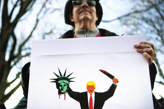 2月18日,华盛顿民众聚集在白宫附近抗议特朗普的决定。图片来源 视觉中国