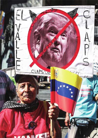 2月23日,委内瑞拉的政府支持者在首都加拉加斯举行大规模集会,支持总统马杜罗对美国“救援物资”说“不”。