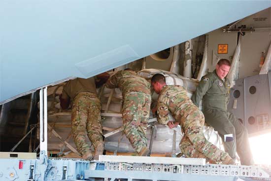 2月22日,美国军人将“救援物资”搬上飞机,准备运往哥伦比亚库库塔市。