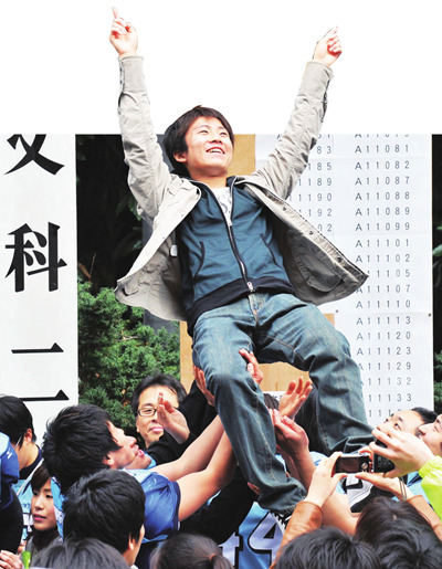 2010年3月10日,日本最知名的高等学府之一东京大学放榜,考生庆祝成功考取。图片来源 视觉中国
