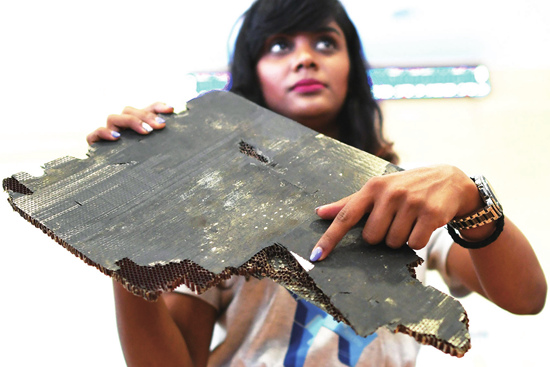 两片据信来自MH370航班的碎片于3月3日首次公开展出。