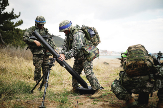 2017年度“鹞鹰”军演期间,韩国士兵在浦项市附近部署武器。图片来源 视觉中国