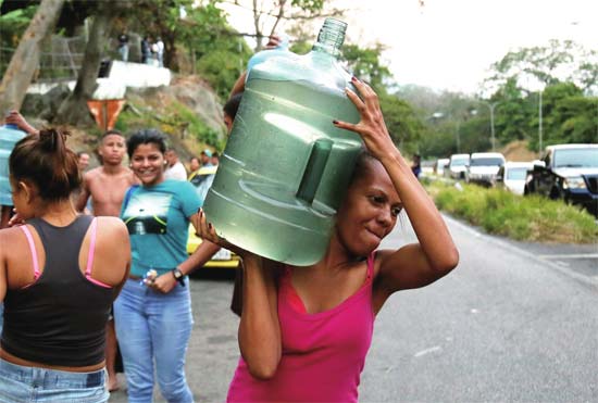 3月10日,委内瑞拉全国大停电进入第三天。起初,停电导致的交通拥堵迫使首都加拉加斯数以万计的通勤者走路回家,不久,人们就开始担心更多的问题——用水受到严重影响,买不到桶装水的人们带上桶到国家公园去接山泉;广场上,等待用公共充电设备给手机充电的人排成长队……