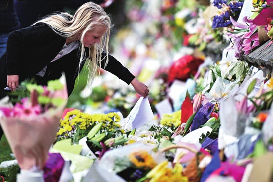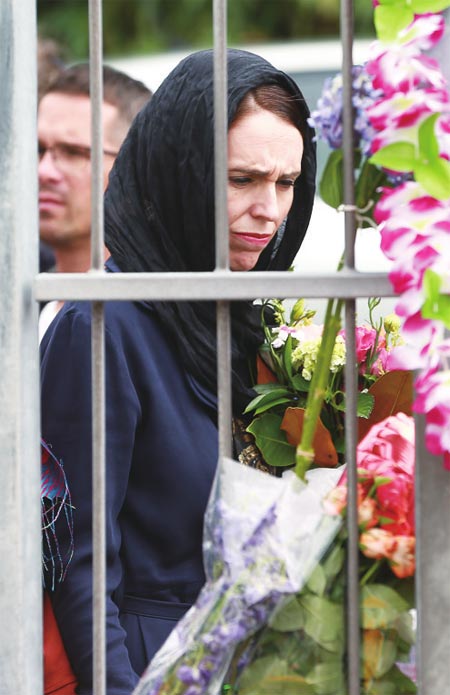 3月17日,新西兰总理阿德恩在发生惨案的清真寺悼念遇难者。