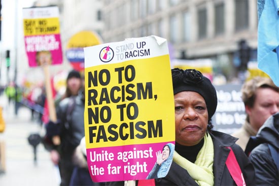 3月16日,英国伦敦举行游行示威,反对制造了克赖斯特彻奇枪击案的种族主义和法西斯主义。
