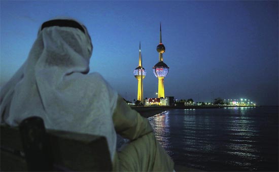 3月17日,位于科威特海湾的科威特塔以灯光组成新西兰国旗,悼念克赖斯特彻奇枪击案遇难者。