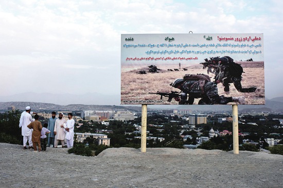阿富汗首都喀布尔维齐尔山上的安全部队征兵广告。图片来源 视觉中国