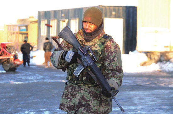 1月21日,阿富汗瓦尔达克省的一名军人在站岗。该省一座军事基地当天遭到袭击,100多名死伤者中大部分是政府军士兵。图片来源 视觉中国