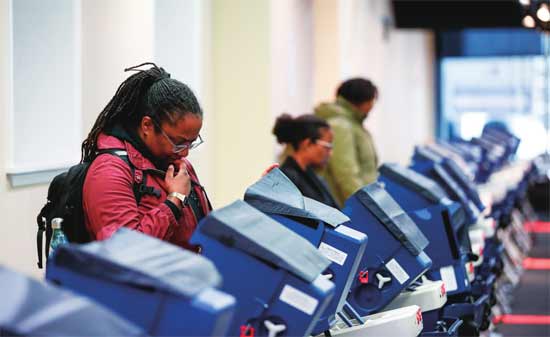 4月2日,美国民众在芝加哥使用投票机。图片来源 视觉中国