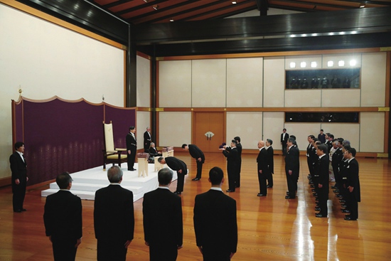 在东京皇居国事厅举行的登基仪式,以另一种方式创造了历史:现代首次有女性出席天皇的登基典礼。据日本放送协会(NHK)报道,5月1日,首相安倍晋三内阁唯一的女性阁僚、地方创生相片山皋月身着和服,在现场见证了德仁天皇继位。另一名女性、宫内厅仪式委员会副长岩见美铃则站在墙边。
