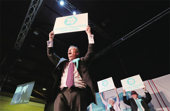 5月11日,英国“脱欧党”领导人奈杰尔·法拉奇出席竞选活动。图片来源 视觉中国
