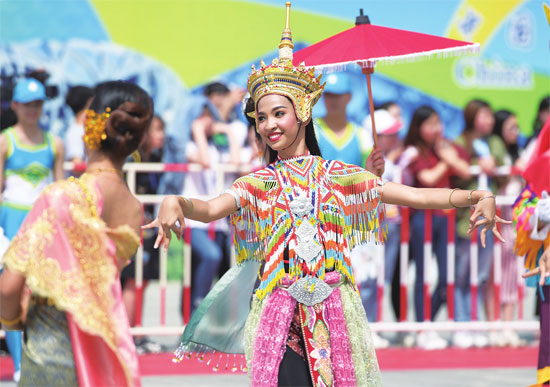 5月16日,来自泰国的演员在亚洲文明巡游活动中表演。图片来源 新华社