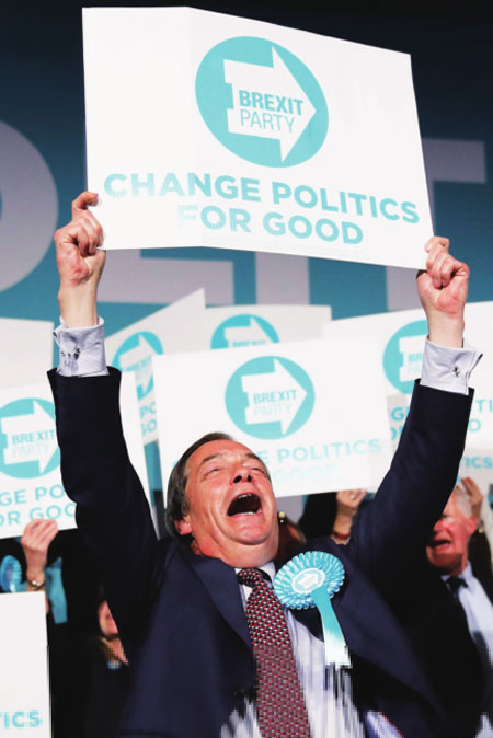 5月23日,英国“脱欧党”领袖奈杰尔·法拉奇在拉票。5月27日的计票结果显示,该党成为英国在欧洲议会选举中的最大赢家。
