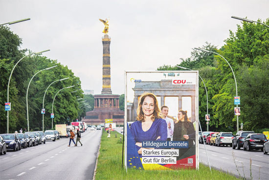 欧洲议会选举期间,政治海报在德国柏林街头随处可见。