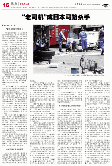 “作为对池袋事件的反应,东京老人正被迫放弃他们的驾照。”《文春周刊》称,“5月发生另一起事故后,更多的人发出了要求重新考虑道路环境的声音。可以肯定的是,人们的交通安全意识已经提高。”