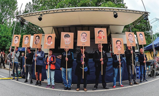 2018年7月11日,人们举着受害者的照片,在德国慕尼黑抗议新纳粹恐怖组织NSU。当天,NSU头目贝亚特·切佩因涉嫌参与10起谋杀案被判处终身监禁。图片来源 视觉中国