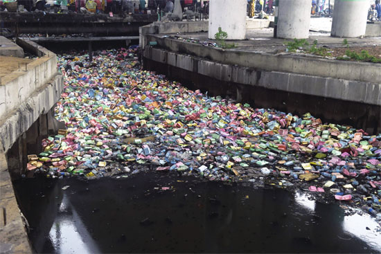 6月26日,塑料垃圾堵塞了拉各斯的一个排水点。图片来源 视觉中国