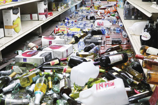 7月6日,地震过后,加州里奇克莱斯特的一家超市满地狼藉。