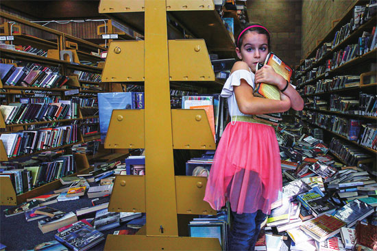 7月5日,佐伊·帕尼达和她的双胞胎姐妹一起到图书馆,帮忙整理被震落的书籍。