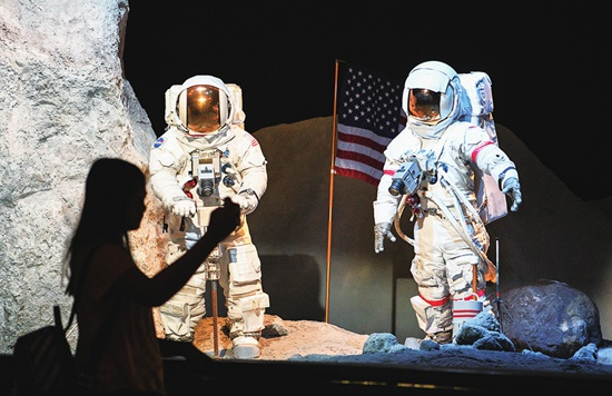 7月19日,美国休斯顿市,人们在休斯敦太空中心参观登月50周年纪念展。