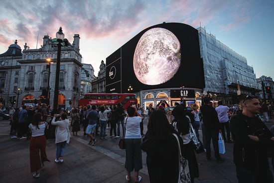 7月20日,“人民的月亮”艺术装置在英国伦敦的皮卡迪利广场被点亮。