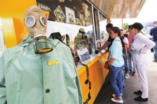 在切尔诺贝利的外围,士兵会检查游客的护照和辐射水平,商贩出售防毒面具、防护服、印着“我爱切尔诺贝利”的徽章和带有核辐射标志的特色小吃,比如“辐射冰激凌”。据路透社报道,普里皮亚季的地标性建筑、被弃置30多年的巨型摩天轮经过修复,已在5月1日正式启用。