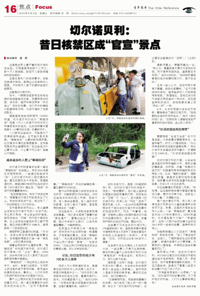据美国有线电视新闻网(CNN)报道,切尔诺贝利已成为“黑暗旅游”现象(不少人热衷于访问与死亡和痛苦有关的地点,比如纳粹集中营或者9·11事件纪念馆)的最新例子。