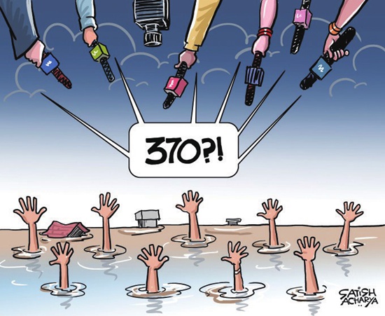 印度马哈拉施特拉邦等地正在遭受洪水袭击,成千上万的民众没吃没喝没电。与此同时,印度媒体的全部注意力却在废除宪法第370条、取消查谟-克什米尔自治上。