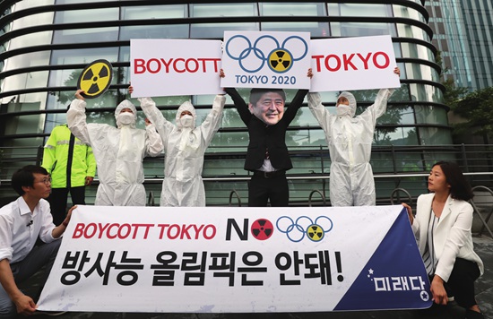 8月7日,韩国民众在首尔的日本使馆附近发起抵制2020年东京奥运会的活动,并称之为“放射性奥运会”。