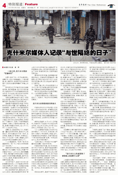 每天早晨,酒店经理维维克·瓦齐尔都眼巴巴地等《大克什米尔报》送到。“这两页纸是我通向世界的唯一窗口。”他说。