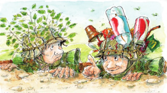 士兵伪装还靠拔枝插草?明明是塑料瓶、易拉罐、旧吸管这样的垃圾更常见!
