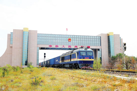 9月11日,中欧班列通过二连浩特国门驶向欧洲。图片来源 视觉中国