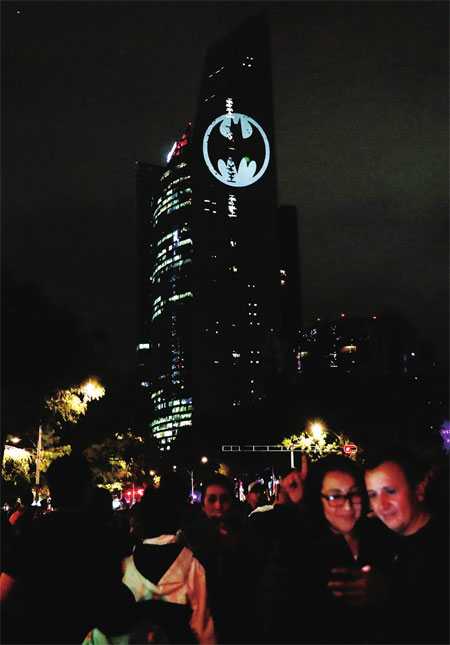 9月21日晚,东京、柏林、罗马、伦敦、约翰内斯堡等城市的大楼上,亮起了召唤蝙蝠侠的标志“蝙蝠灯”。驻足遥望的人群中,不乏粉丝装扮成的“蝙蝠侠”“罗宾”“猫女”等角色。这是拥有蝙蝠侠版权的美国DC漫画公司、美国华纳兄弟娱乐公司在全球多个国家开展的庆祝活动之一。