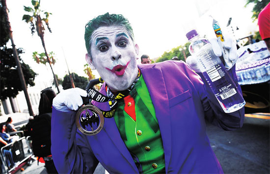 9月21日,在美国洛杉矶举办的蝙蝠侠“粉丝向”5公里长跑活动中,“小丑”“毒藤女”等反派角色混进了跑步队伍。
