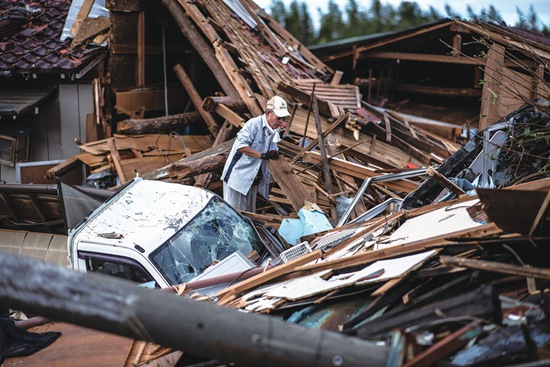 10月13日,千叶的一名老人站在废墟中。台风“海贝思”来临前,当地遭龙卷风袭击,大量建筑物被毁。