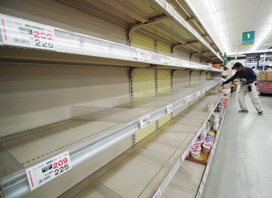 10月11日,千叶县馆山市一家超市的货架几乎被扫空,唯独韩国方便面乏人问津。