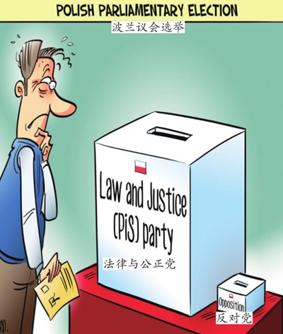 10月13日,波兰举行议会选举,出口民调显示,执政党法律与公正党获得43.6%的选票,保持议会众议院第一大党地位。