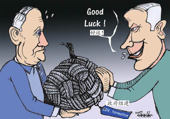 10月22日,内塔尼亚胡的组阁努力又失败了,他干脆把球踢给竞选对手甘茨,让对方操心去了。