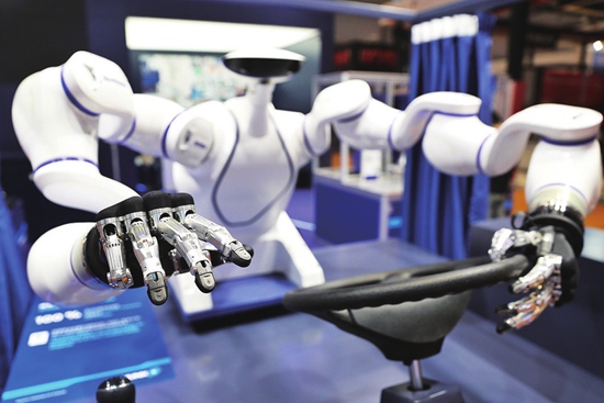 第二届进博会高端装备展区内,被誉为“最灵巧的手”的SVH仿人五指机械手亮相。凭借带有9个驱动器的运动指骨和富有弹性的表面,它不仅能完成拉窗帘、开车等工作,拿刀叉这种精细活儿也能胜任。