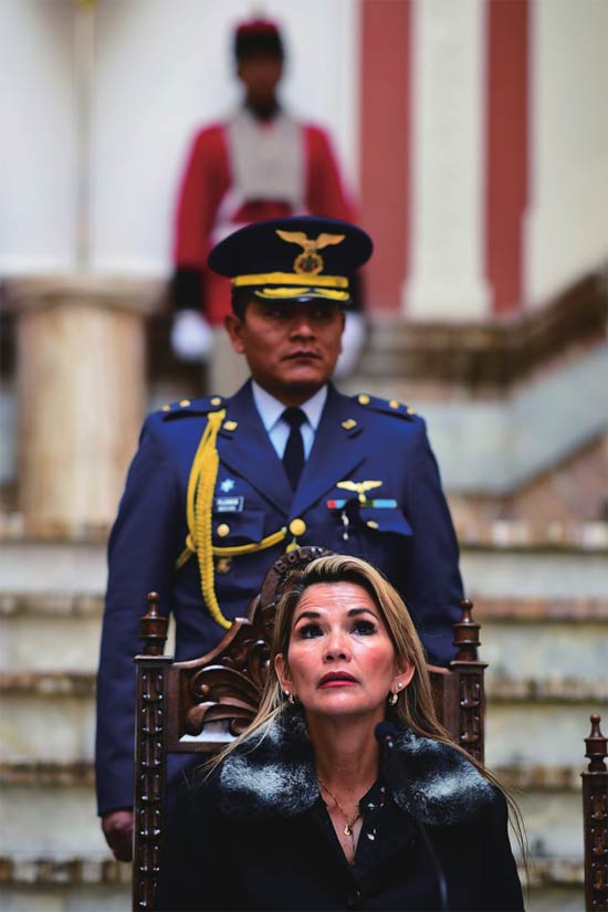 11月15日,玻利维亚“临时政府”领导人阿涅斯在总统府对媒体讲话。