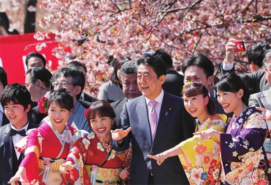4月13日,安倍晋三出席樱花观赏活动。 图片来源 视觉中国