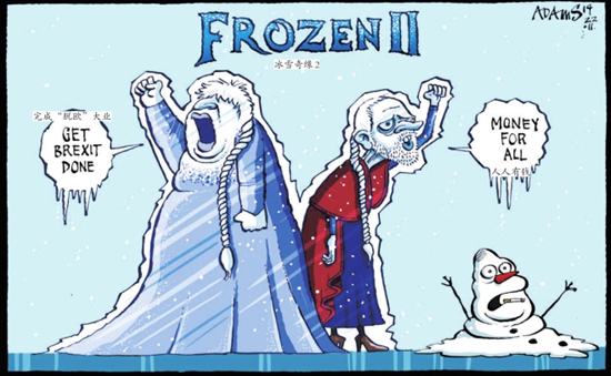迪士尼的新片《冰雪奇缘2》里,女主角艾莎有着操纵冰雪的魔力。但在英国,这两位“女主”——保守党的约翰逊和工党的科尔宾——似乎只有冻住自己的本事。
